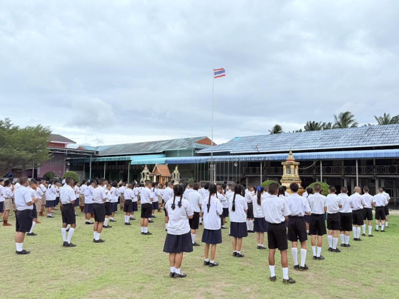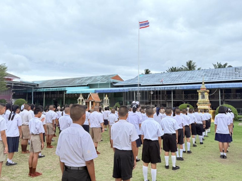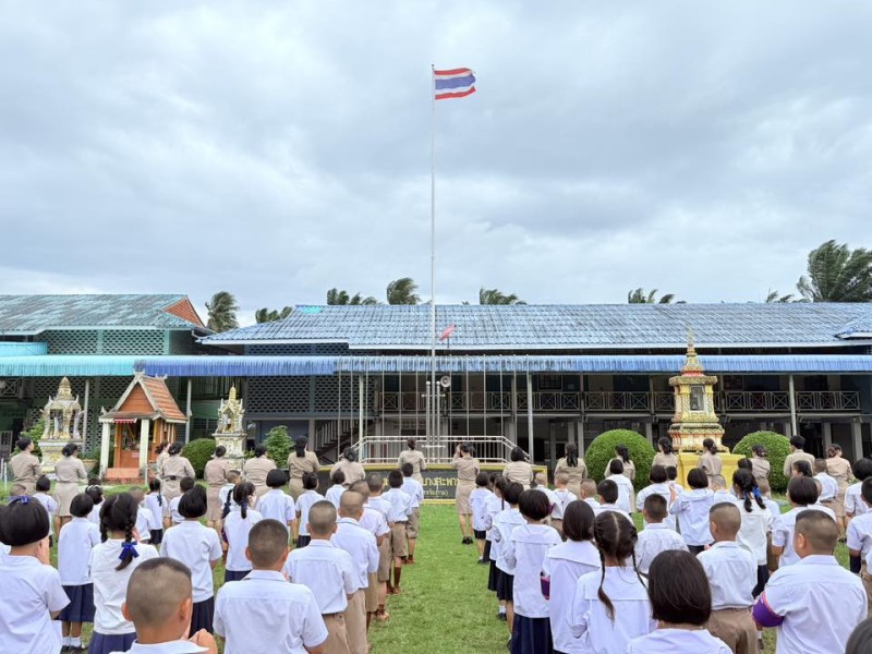 วันจันทร์ที่ 29 กันยายน 2568 เวลา 08.00 น. นางสุกัญญา ปัตเมฆ ผู้อำนวยการโรงเรียน พร้อมด้วย นางสาวรัตติยาภรณ์ นาคโสภา รองผู้อำนวยการโรงเรียน คณะครู บุคลากรทางการศึกษา และ นักเรียนโรงเรียนบ้านบางสะพานน้อย ร่วมกิจกรรม เคารพธงชาติและร้องเพลงชาติไทย เนื่องในวันพระราชทานธงชาติไทย 28 กันยายน 2568 และเพื่อน้อมรำลึกในพระมหากรุณาธิคุณ พระบาทสมเด็จพระมงกุฎเกล้าเจ้าอยู่หัว (รัชกาลที่ 6) ที่พระราชทานธงไตรรงค์เป็นธงชาติไทย ณ บริเวณหน้าเสาธงโรงเรียนบ้านบางสะพานน้อย