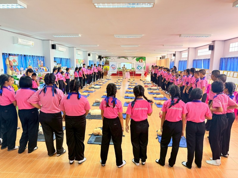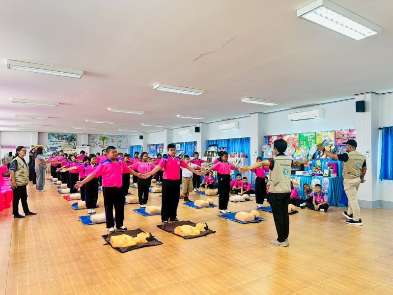 วันจันทร์ ที่ 10 พฤศจิกายน 2568 โรงเรียนบ้านบางสะพานน้อย นำโดยนางสุกัญญา ปัตเมฆ ผู้อำนวยการโรง พร้อมด้วย นางสาวรัตติยาภรณ์ นาคโสภา รองผู้อํานวยการโรงเรียน คณะครูและนักเรียนโรงเรียนบ้านบางสะพานน้อย ได้เข้าร่วมกิจกรรมการอบรมทักษะการช่วยชีวิตพื้นฐาน จัดโดยทีมงานจาก share for life join for love ณ โรงเรียนบ้านบางสะพานน้อย