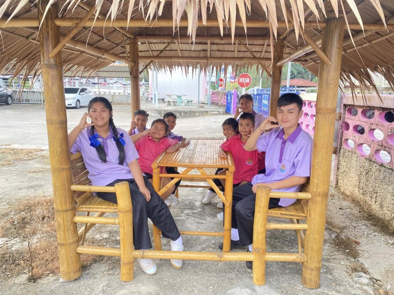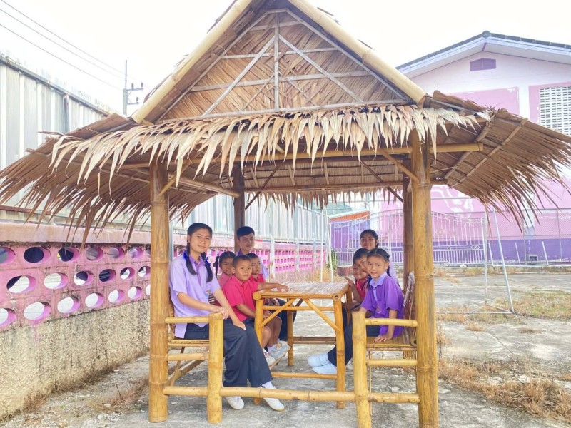 ผู้ใหญ่ใจดีที่จัดซื้อซุ้มไม้ไผ่ให้กับนักเรียน